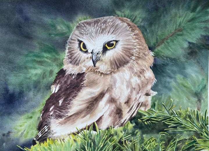 Donna has found watercolor painting to be a rewarding pastime and loves the way it helps one to focus on the natural beauty all around us. Her subject matter often includes birds and flowers.