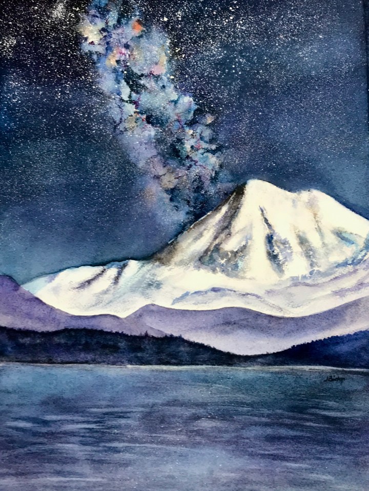 The clarity and luminosity of watercolour lends itself well to so many different subjects, both in the natural world and the more abstract. Recently, an expanding interest in the alchemy of the universe has led Jane to paint colourful birds, galaxies, and stellar events. The joyful exploration of new subject matter and immersion in the painting process provides her life with wonder and possibilities!