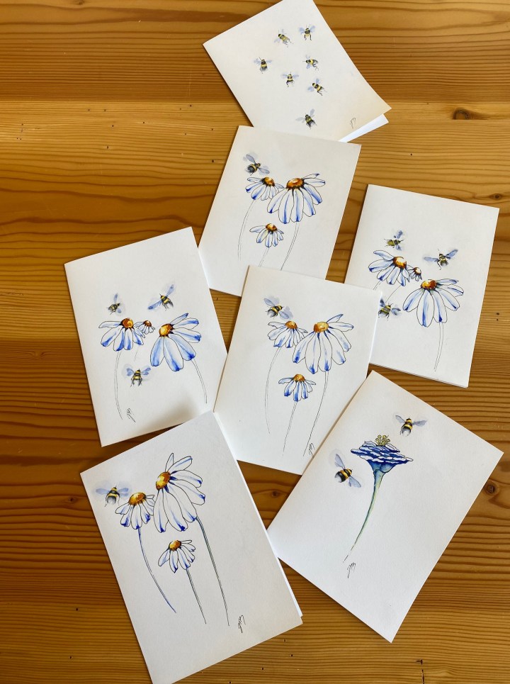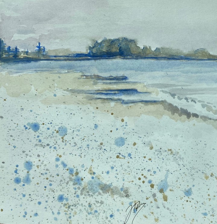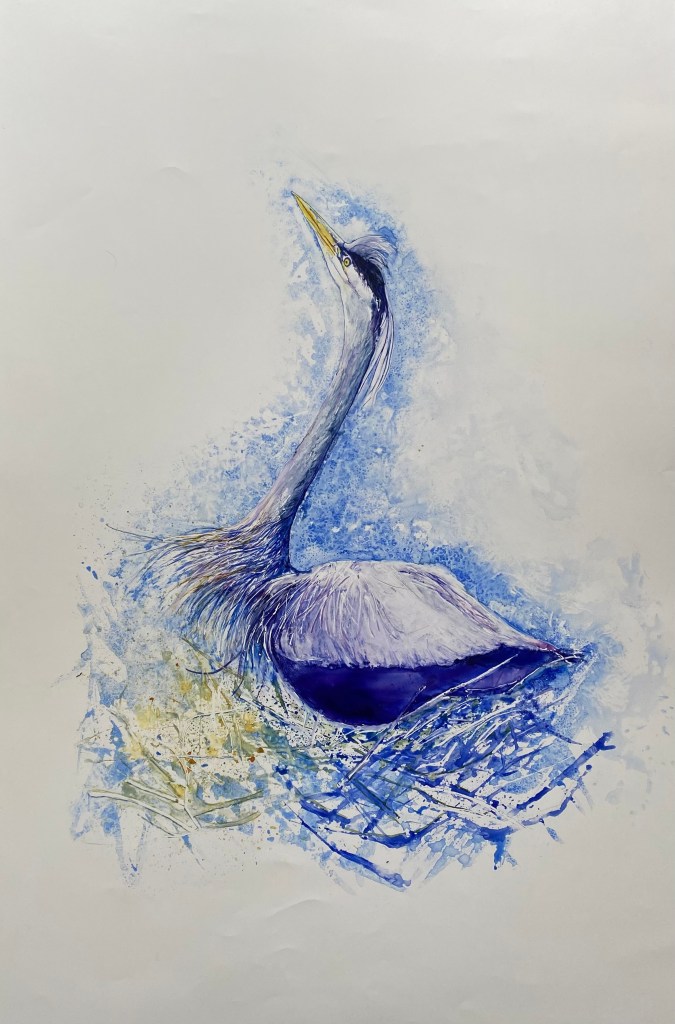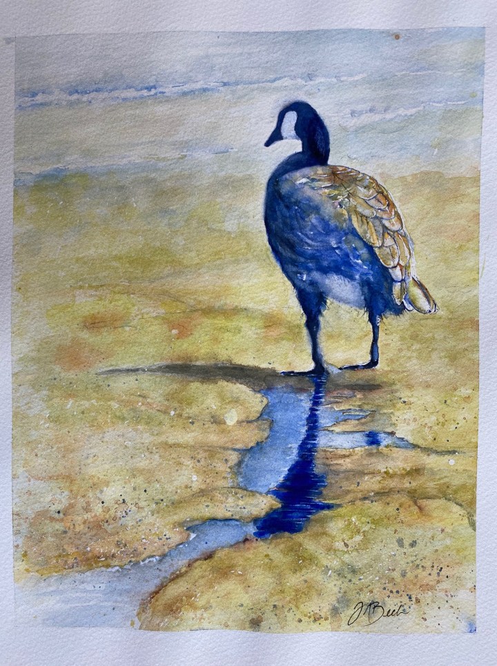 Judi notes that drawing and painting carry her away to a quiet world of solitude and joy. Her work has included pen and ink, bold graphics, Sumi, Chinese brushstroke, and acrylics. Recently, her passion for hiking, biking, and kayaking have been fused with watercolour painting, often en plein air.