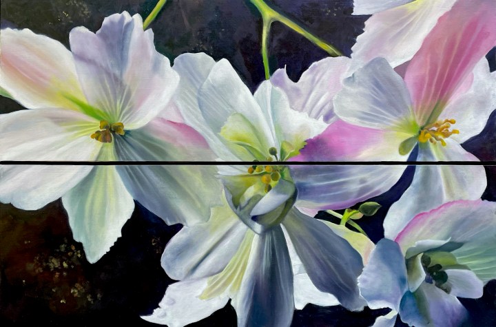 Kathryn is thoroughly engaged in the joy of oil painting. Though initially a watercolourist, she began exploring oils in 2019 and now paints almost exclusively in oil. She loves to play with form, shadow and light in all painting mediums, but finds oil bends to her will as easily as watercolour did but gives her options watercolour did not.