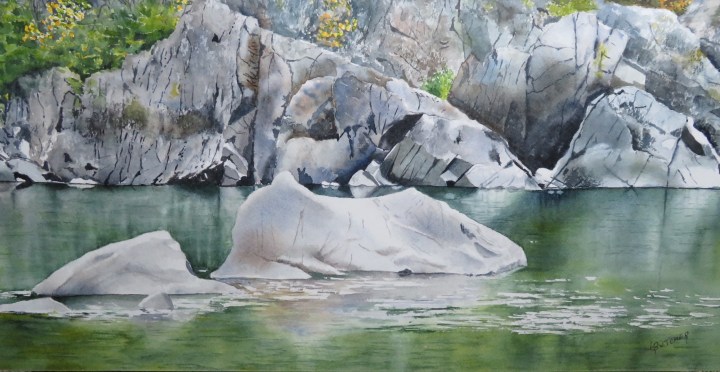 She has been painting with watercolour for over fifteen years and has experimented with a variety of subjects, but her favourite subject matter has to have texture. Rocks, old buildings, wooden doors and gnarly tree trunks offer the challenge that interests her and keeps her painting.